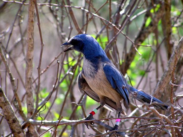 3-10 feet above ground in one of the shrubby oaks. Scrub-jays usually